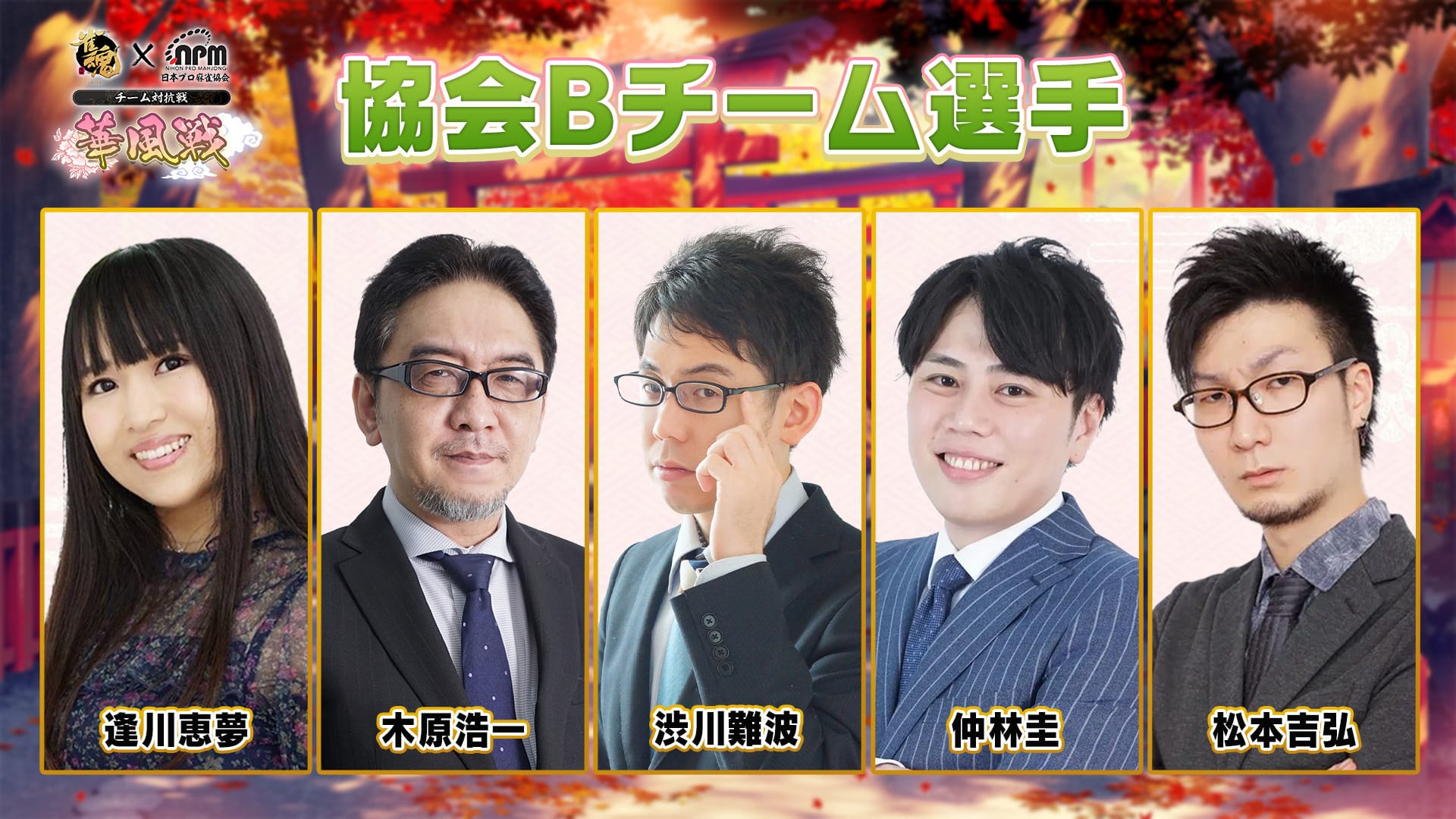 協会Bチームからは逢川恵夢プロ、木原浩一プロ、渋川難波プロ、仲林圭プロ、松本吉弘プロが参戦する。