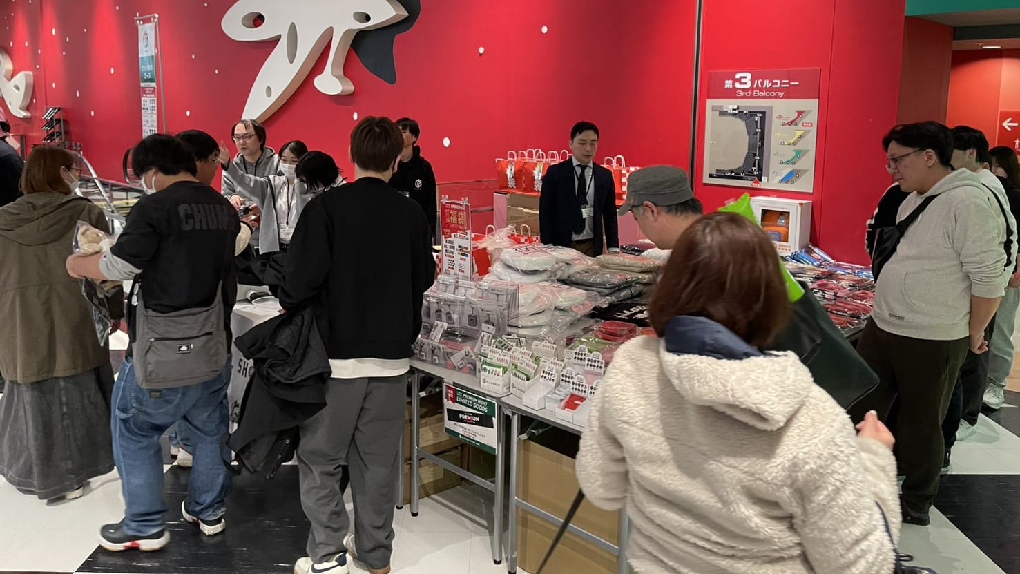 M.LEAGUE OFFICIAL SHOPの販売ブースには、普段その店舗でしか買えない地域限定グッズが勢揃いし、待機列が形成されるほどの賑わいを見せていた。